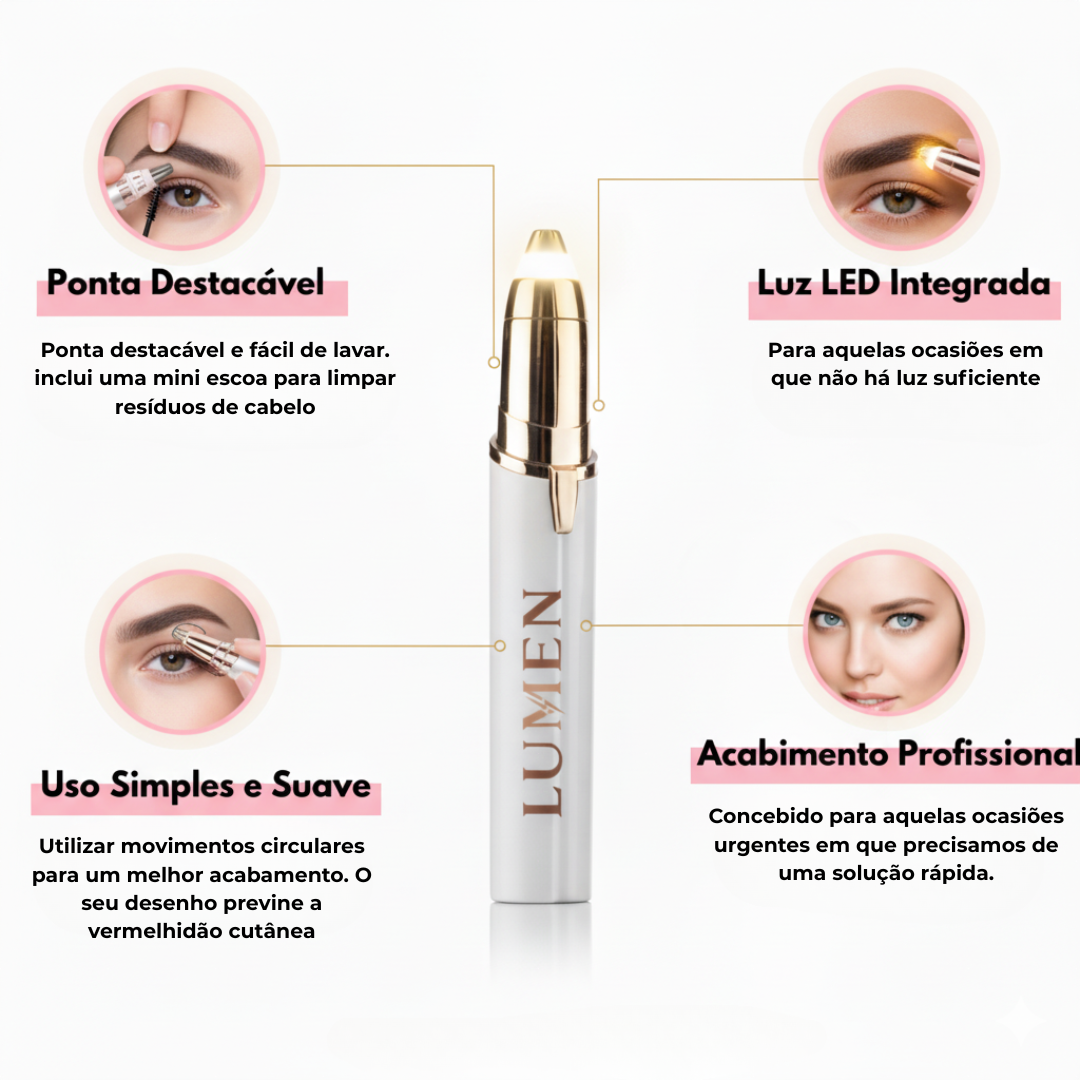 Resposta 1: Este dispositivo possui uma cabeça de aparar de alta precisão concebida para uma depilação suave e eficaz. É compacto e leve, sendo fácil de manusear e perfeito para viagens. Inclui também uma luz incorporada para ajudar a identificar até os pelos mais finos para uma experiência de limpeza completa.